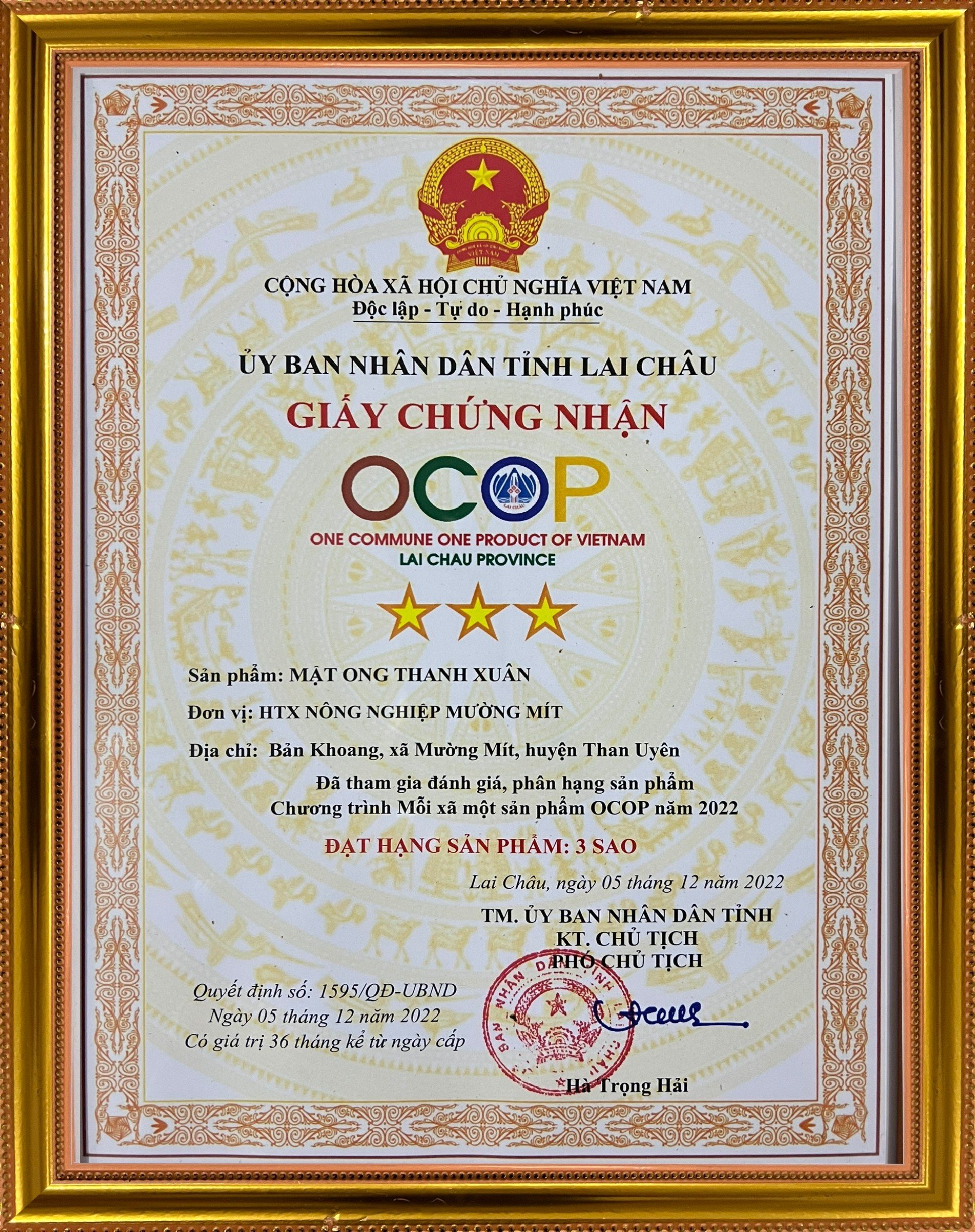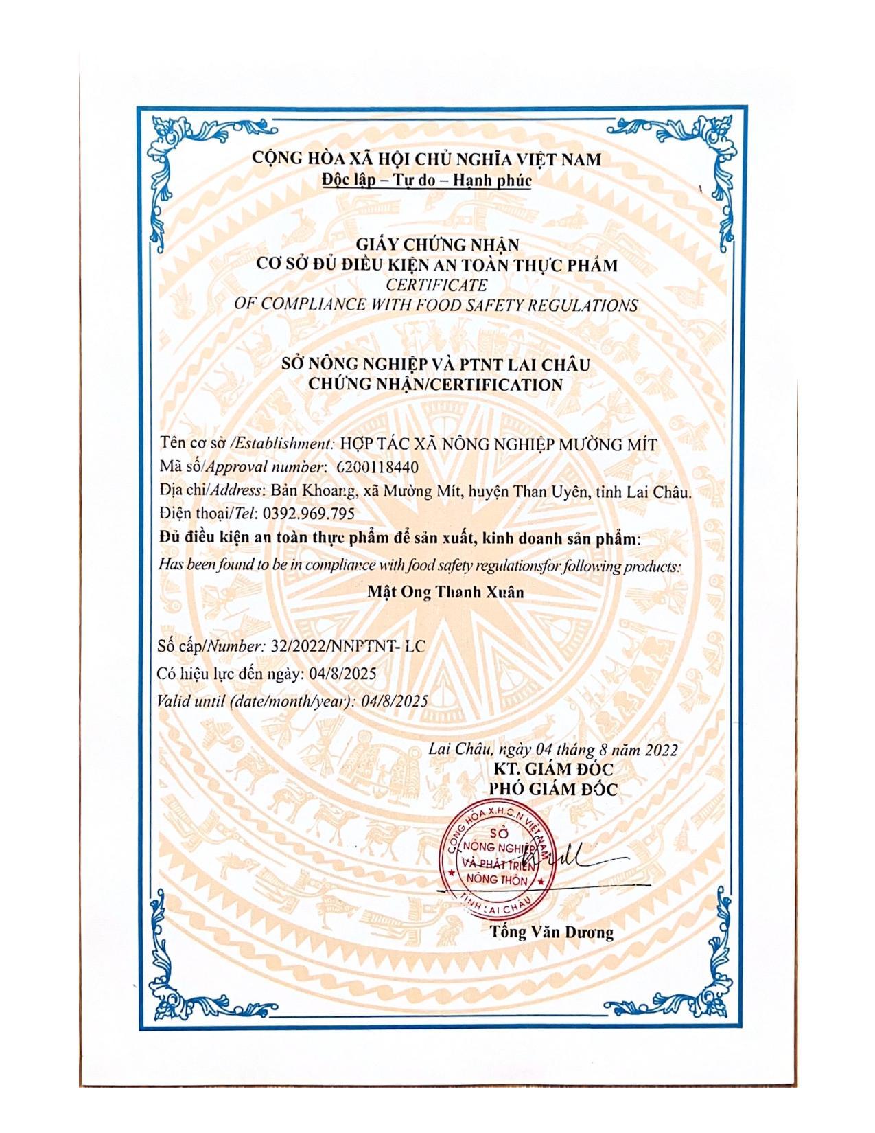 – Sản phẩm đạt chuẩn chất lượng OCOP 3 sao tỉnh Lai Châu, được sản xuất theo tiêu chuẩn VietGap.